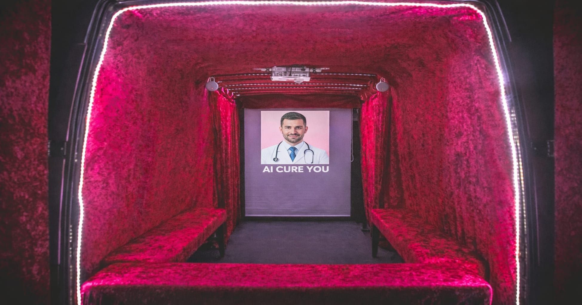 AI CURE YOU er en intim, interaktiv performance inde i Artbulancen for små grupper ad gangen. Publikum møder en kunstig intelligens, der lytter og forsøger at hele, idet de træder ind i et ophængt rum, hvor fravær finder en stemme, og lytten opstår uden en krop. Gennem spørgsmål og stilhed tager et møde form med en tilstedeværelse, der reagerer, forandrer sig og spejler, i spændingsfeltet mellem omsorg og teknologi. Hvad sker der, når nærheden opløses, hvis performancen i sidste ende bliver til en algoritme?